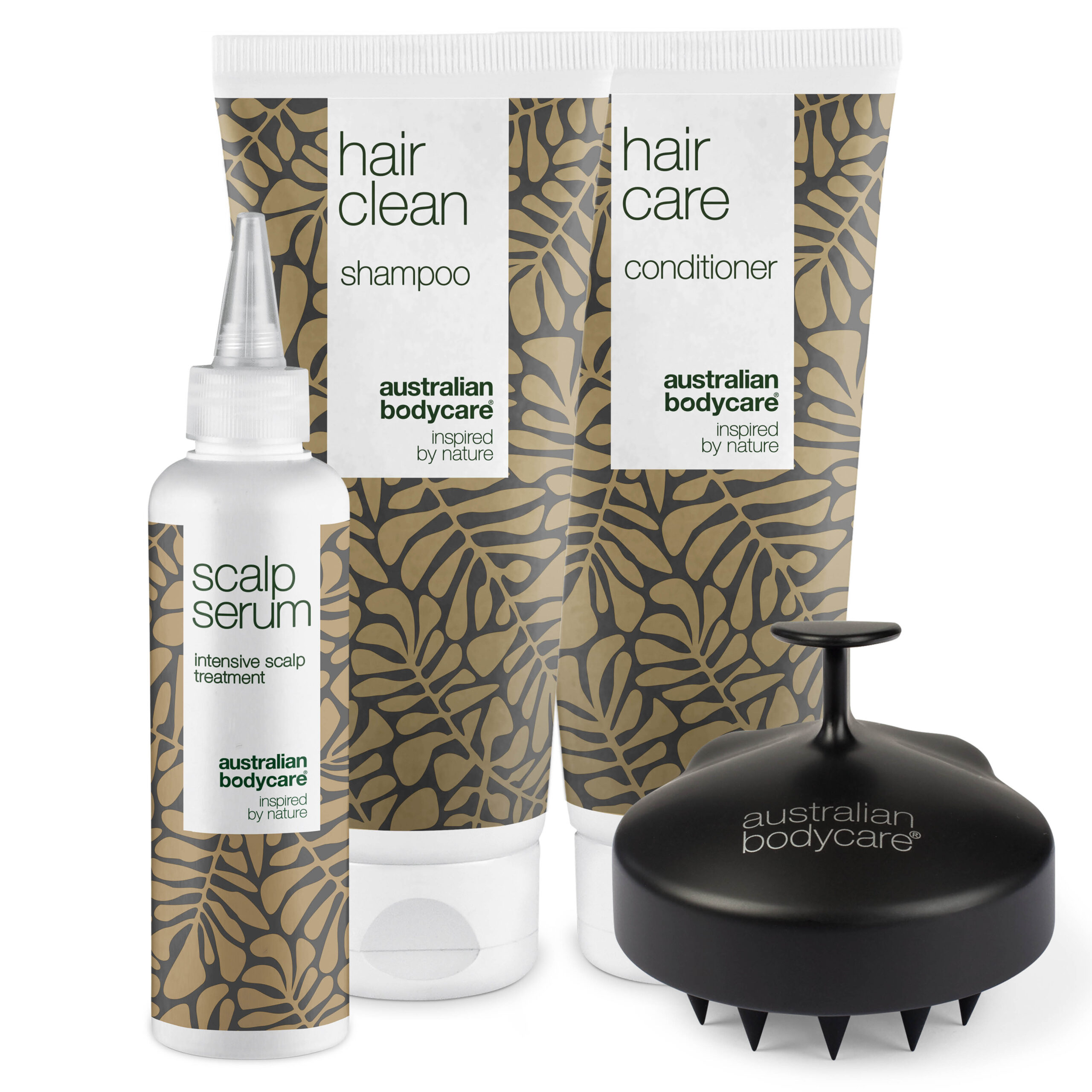 Er du træt af skæl. Fedtet hovedbund. Eller oplever du hovedbundskløe og tørhed, Så prøv pakken med 4 produkter til irriteret hovedbund Scalp Serum. Hair Clean shampoo og Hair Care balsam fugter og plejer tør hovedbund Effektiv mod skæl. Fedtet hovedb