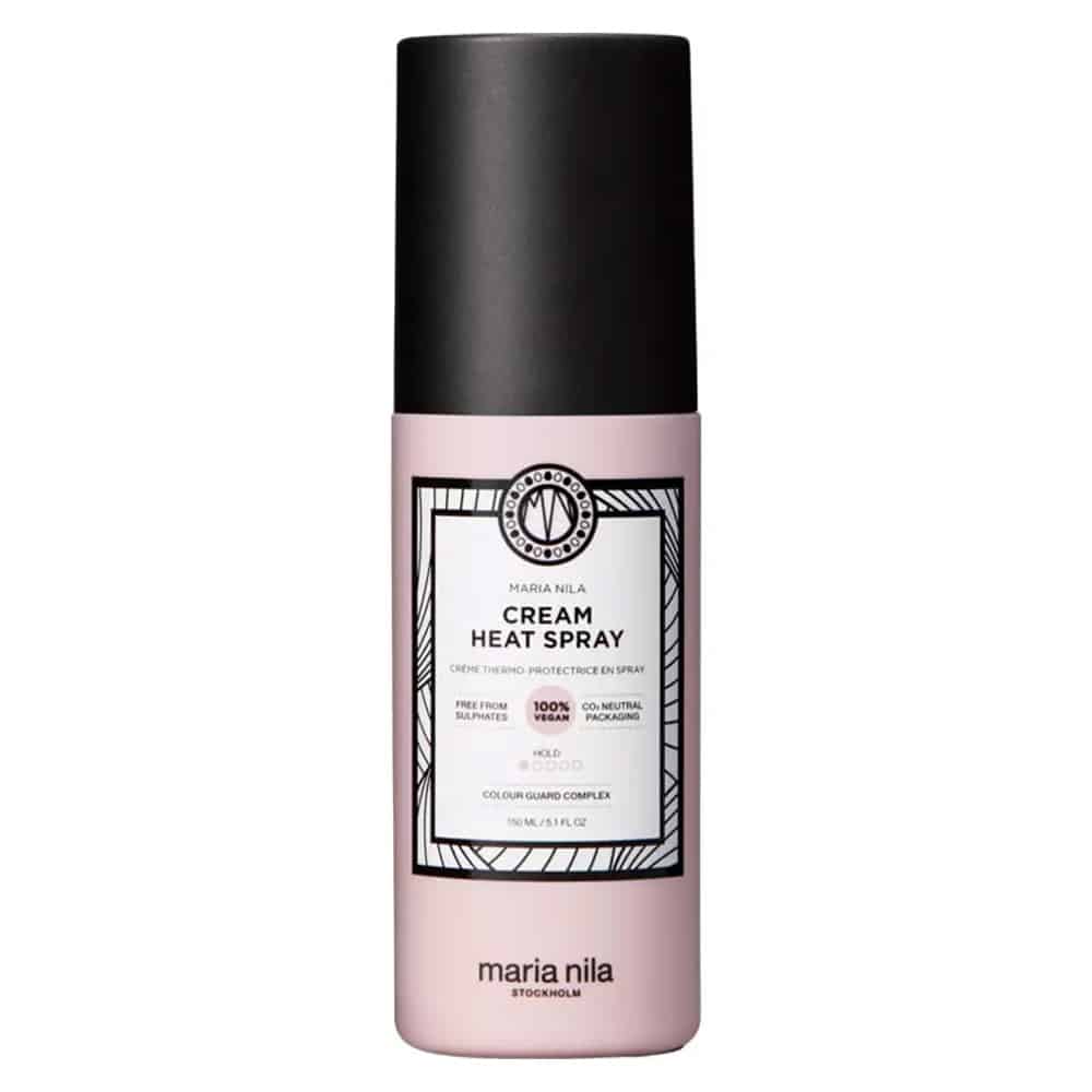 Maria Nila Cream Heat Spray 150ml er en avanceret varmebeskyttende spray. Designet til, at beskytte dit hår mod skader fra føntørrere. Glattejern og krøllejern. Den unikke formel indeholder nærende ingredienser. Der arbejder for, at styrke og fugte håret. S